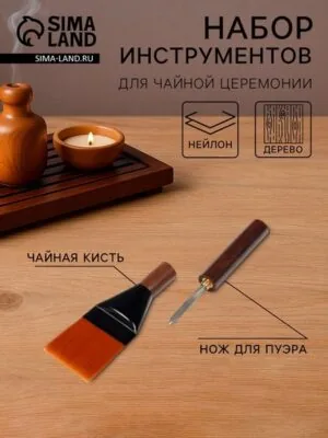 Комплект необходимых инструментов для настоящих ценителей чайной церемонии. В набор входят чайная кисть для ухода за чайной доской (чабань) и нож для пуэра для удобного отделения чая от прессованного блина. Длина каждого инструмента: 20 см.Идеальный набор для чайного мастера: чистота, удобство и традиции!Этот набор инструментов станет незаменимым помощником в организации чайной церемонии. Чайная кисть и нож для пуэра – это ключевые инструменты для комфортного и аутентичного чаепития. Набор инструментов для чая поможет создать атмосферу гармонии и наслаждения.ОсобенностиВ наборе 2 предмета: Кисть и нож для пуэра – все необходимое для подготовки чая.Материал — дерево и нейлон: Прочные и долговечные материалы.Длина 20 см: Удобная длина для использования.Коричневый цвет: Классический цвет, гармонирующий с чайной церемонией.Многофункциональность: Кисть для чабани, нож для пуэра – все для удобного приготовления чая.Наслаждайтесь каждым этапом чайной церемонии!С этим набором инструментов вы сможете в полной мере раскрыть красоту чайной церемонии. Уход за чабанью, аккуратное отделение чая – каждый этап приготовления чая превратится в удовольствие.