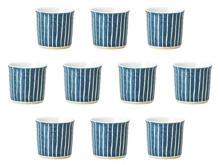 Набор из 10 бесплатных чашек с синей глазурью и вертикальными полосками x Rock Ceramic Setomonohonpo [9 8,5 см] (335 куб.см)] Чашки, (Фаянсовая посуда)