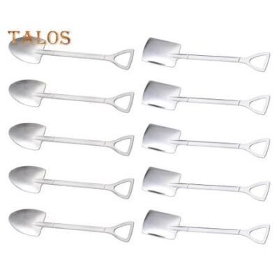 Набор из 10 ложек в виде арбуза из нержавеющей стали с заостренными квадратными ложками для десерта, кофе, йогурта, торта, фруктов, мороженого серебряный