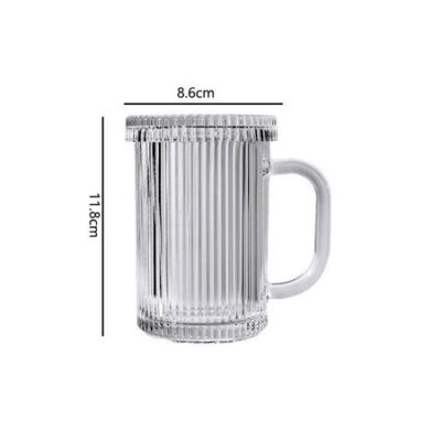 Набор из 4 чашек латте для холодного кофе по 330 мл, бытовые бокалы для вина с вертикальными полосками и крышкой, прозрачная посуда для напитков, кружки для сока, молока, чая 4pcs