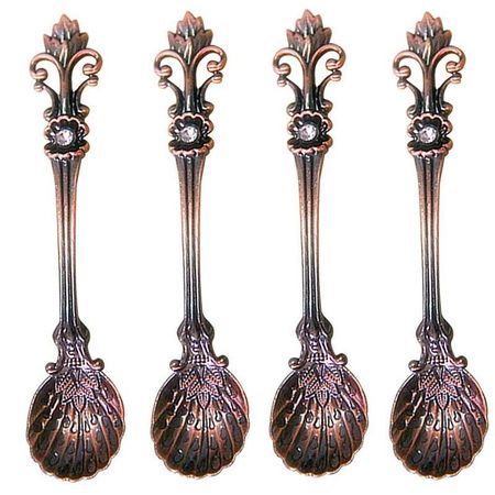 Набор из 4 шт. 11 см металлических резных кофейных ложек в королевском стиле, винтажная столовая ложка, антикварные чайные ложки, кофейные ложки, столовые ложки MIT красный