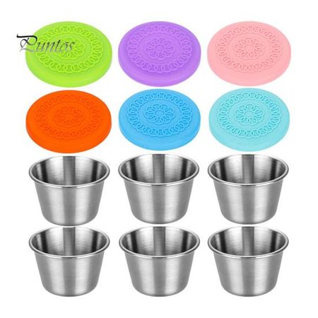 Набор из 6 чашек для соуса, герметичные контейнеры из нержавеющей стали с силиконовыми крышками, многоразовые чашки для приправ для ланч-боксов, путешествия 70ml 6pcs