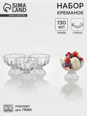 Сервировка десертов в стиле! Набор креманок – стеклянные ёмкости для сладких блюд. Они подходят для подачи йогуртов, пудингов, фруктовых смесей и мороженого на семейном столе.Прозрачное стекло делает их практичными для кухни, где важно видеть содержимое порций.Особенности:Комплект из четырёх штук: набор включает четыре креманки, что подходит для семейных трапез или небольших вечеринок. Их можно компактно хранить в шкафу, не занимая много места.Стеклянный материал: ёмкости из прозрачного стекла позволяют видеть содержимое. Стекло легко очищается и не удерживает запахи от предыдущих блюд, что удобно для разнообразных рецептов.Рельефная поверхность: текстура с рельефом добавляет эстетическую ценность при сервировке, делая десерты более привлекательными.Круглая форма: классический дизайн креманок подходит для различных видов десертов. Они вмещают порции без перелива, сохраняя аккуратный вид на столе.Выберите его для стильной подачи сладостей – он подчеркнёт вкус блюд и добавит уют в трапезу.