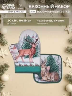 Набор кухонных прихваток «Новогодний лес» создаёт праздничное настроение и делает приготовление ужина безопасным. В комплекте — две модели: варежка для ловкого обращения с горячими формами и классическая квадратная прихватка. Узор с лесными зверями и ёлками напоминает о зимней сказке, а натуральный хлопок с полиэстером бережно защищает руки от высокой температуры.Что входит в наборПрихватка-варежка размером 20×28 см.Квадратная прихватка 19×19 см.Материал — хлопок с добавлением полиэстера для прочности.Новогодний рисунок с тематикой зимнего леса.Упаковка — прозрачный пакет, готовый к подарку.Практичность и уходПлотная ткань выдерживает контакт с горячими поверхностями, не деформируется при частом использовании. Стирайте при температуре до 40°C, избегая отбеливателей. Глажка при 110°C сохранит яркость рисунка. Набор подходит для ежедневной эксплуатации и станет акцентом в праздничном декоре кухни.Для кого этот наборЕсли вы ищете полезный и душевный подарок на Новый год или Рождество — эти прихватки идеально подойдут. Они сочетают бытовую функциональность с праздничной эстетикой, даря тепло и уют в зимние вечера. Порадуйте близких или себя — добавьте в готовку немного волшебства.