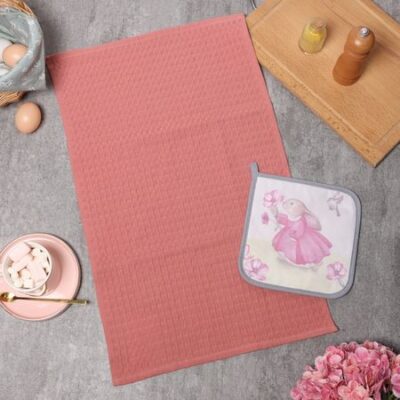 Набор кухонного текстиля с кроликом — это практичный и милый акцент для дома в пасхальные дни и не только. Две вещи из натурального хлопка в нежных весенних оттенках создают гармоничный дуэт для готовки и сервировки. Набор упакован в подарочный пакет, что делает его готовым сюрпризом для близкого человека или для себя, чтобы добавить уюта кухне.Что входит в наборВафельное полотенце размером 35×60 см. Плотная структура ткани обеспечивает отличную впитываемость.Квадратная прихватка 19×19 см из саржи. Удобный размер и петелька для подвешивания всегда держат её под рукой.Оба предмета выполнены в едином стиле с цветочно-растительным рисунком в пастельной гамме.Качество и практичностьНабор изготовлен из 100% хлопка средней плотности. Это гарантирует приятные тактильные ощущения, гипоаллергенность и долгий срок службы при правильном уходе. Ткани не имеют специальной пропитки, сохраняя естественные свойства натурального материала.Для кого этот наборЭтот комплект станет удачным приобретением для тех, кто ценит в доме детали. Он подойдёт как для ежедневного использования, так и для создания праздничной атмосферы на Пасху. Практичный хлопковый текстиль с тематическим дизайном — это тот элемент, который делает кухню по-настоящему домашней.