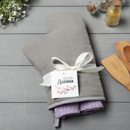 Этот набор кухонного текстиля объединяет практичность и лаконичный дизайн. В него входят две вафельные салфетки и прихватка-варежка в гармоничной цветовой гамме. Комплект создаёт аккуратный и функциональный образ на вашей кухне.Особенности набораКомплектация: две салфетки 35×60 см и одна прихватка 18×28 см.Фактура: вафельное полотно для салфеток и гладкая саржа для прихватки.Цветовая палитра: спокойные однотонные оттенки серого и сиреневого.Универсальное назначение: для повседневного использования и в качестве тематического подарка.Натуральный состав: 100% хлопок, приятный коже.Простой уход: стирка при 30°C, глажка при 100°C, без отбеливания.Практичность в деталяхВафельные салфетки быстро впитывают влагу, а плотная прихватка надёжно защищает руки. Набор подходит для любого сезона и легко вписывается в интерьер. Лаконичный дизайн делает его уместным подарком ко многим событиям — от 8 Марта до Дня матери. Это выбор для тех, кто ценит простые и качественные вещи для дома.