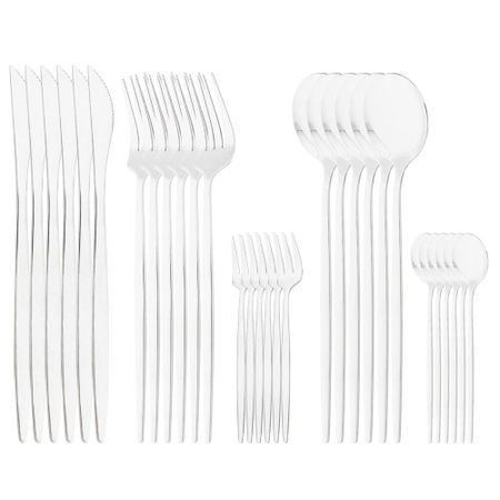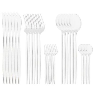 Набор посуды из зеленого золота, 30 предметов, вестерн, нержавеющая сталь 18/0, столовые приборы для стейка, нож, вилка, ложка, ужин, домашняя кухня, ресторан серебряный