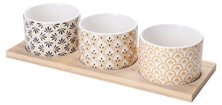 Набор Actue состоит из трёх фарфоровых салатников объёмом 300 мл каждый и бамбукового поддона размером 27×8,5×1,2 см. Этот набор станет отличным выбором для тех, кто ценит качество, стиль и удобство.