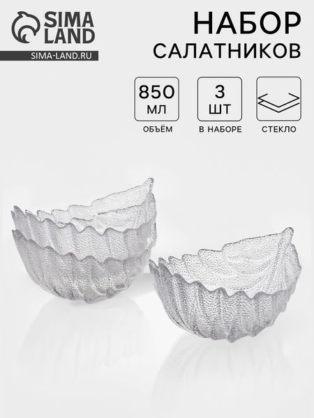 Набор салатников «Лист», 3 шт., размер 1 шт.: 21.5×15.5×11 см, стекло, прозрачный
