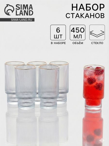 Элегантная сервировка стола! Набор стаканов – комплект из шести стеклянных ёмкостей для напитков. Он подходит для повседневного использования на кухне или во время трапез.Особенности:Набор из шести штук: комплект включает шесть стаканов, что достаточно для семейного ужина или гостевых собраний. Можно хранить вместе, экономя пространство в шкафу.Объём 450 мл: каждый стакан вмещает порцию сока, воды или компота.Качественный материал: ёмкости из стекла прозрачны, что видно содержимое. Стекло не впитывает запахи и моется без усилий.Золотая отводка: отводка золотого цвета добавляет изысканности внешнему виду. Она сочетается с различным столовым декором.Рельефная текстура: грани на поверхности обеспечивают удобный захват. Они предотвращают скольжение в руке во время питья.Набор подходит для домашнего вечера или дружеской встречи. Выберите его для стильного стола – он подчеркнёт вкус напитков.