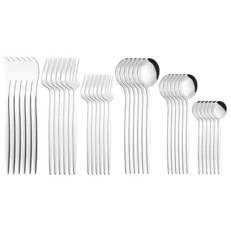 Главная » Все для дома Набор столовых приборов из черного золота, 36 шт., зеркальное серебро, столовая посуда из нержавеющей стали, нож, вилка для торта, ложка, столовые приборы, столовые приборы, кухонные свадебные аксессуары серебряный Просмотров 1 Zoseil Home