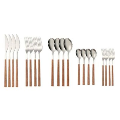 Главная » Все для дома Набор столовых приборов из нержавеющей стали, 20 предметов, столовая посуда с имитацией деревянной ручки, столовый нож, вилка, чайная ложка, дорожная посуда, столовое серебро Просмотров 1 DC-HOME-3