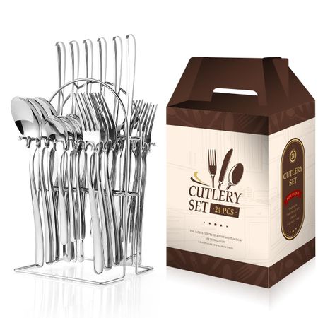 Набор столовых приборов из нержавеющей стали, 24 предмета, бытовые столовые приборы и ложки, полки для хранения, коробки