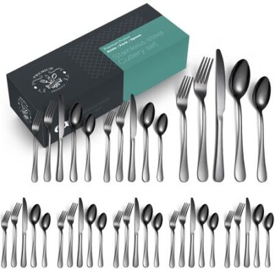 Набор столовых приборов из нержавеющей стали черного цвета из 60 предметов для домашней западной кухни, нож для стейка, вилка, ложка, принадлежности для отелей