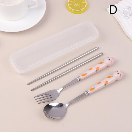 Набор столовых приборов с изображением кролика из нержавеющей стали, ложка, вилка, палочка для еды, студенческая портативная посуда, дорожные наборы столовых приборов с коробкой