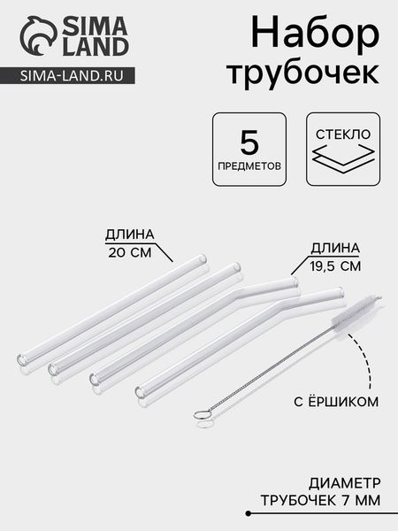Стеклянные трубочки — практичное решение для тех, кто ценит экологичность, долговечность и гигиену в повседневных привычках.Прозрачное боросиликатное стекло не впитывает запахи и не меняет вкус напитков, оставаясь нейтральным и безопасным при каждом использовании.Особенности:5 штук в комплекте: достаточно, чтобы использовать по назначению дома, в офисе или брать с собой. Один — для сока, другой — для коктейля, третий — для воды. Практично, гигиенично, индивидуально.Ершик в наборе: чистка трубочек не занимает времени. Тонкий гибкий ершик легко доходит до самого конца, удаляя остатки жидкости и налет. Прозрачное стекло: Видно, насколько чистая трубочка изнутри. Никаких скрытых загрязнений, плесени или налета.Качественный материал: боросиликатное стекло не боится перепадов температуры. Горячий чай, холодный лимонад — трубочки не треснут, не помутнеют, не покроются микротрещинами при правильном обращении.Подходит для дома, пикника, путешествий. Набор — не просто аксессуары, а часть образа жизни.