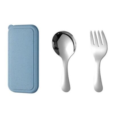 Набор вилок и ложек из нержавеющей стали с футляром, набор дорожных принадлежностей с эргономичной ручкой, переносные принадлежности для пикника на открытом воздухе для путешествий, пикника, кемпинга синий