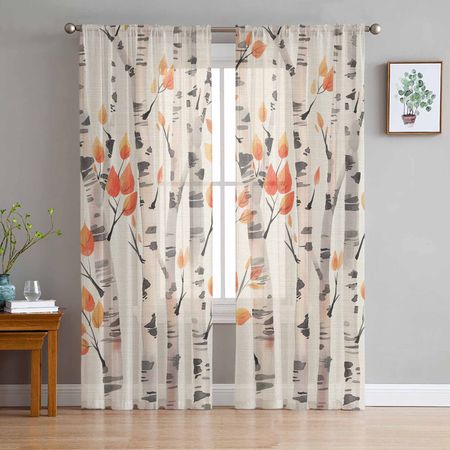 Нарисованные вручную акварельные линии на листьях деревьев, прозрачные шторы для детской спальни, гостиной, вуаль, занавески на окна, тюль, занавески W135 x H114cm