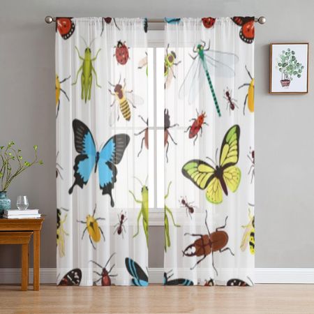 Насекомые Цветной Кузнечик Оса Бабочка Эркер Шторы Вуаль из органзы Драпировка Прозрачный Тюль для гостиной Спальня 135W x 114H(cm)