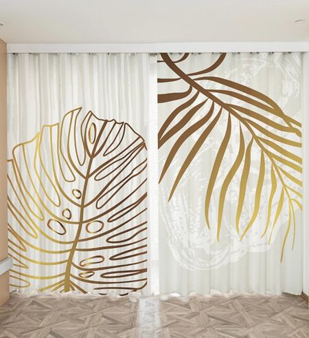 Nordic Ins Современные Простые Шторы Легкие Роскошные Персонализированные Золотые Фольгированные Шторы Для Гостиной Спальни Полувысоты Затемняющие Шторы 2 Шт. W55 X H120cm X 2Grommet Top