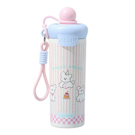Новая чашка термос из нержавеющей стали, чашка для воды высокой ценности, портативная мультяшная чашка с веревкой и соломинкой, милый плавающий животный рисунок 600ml
