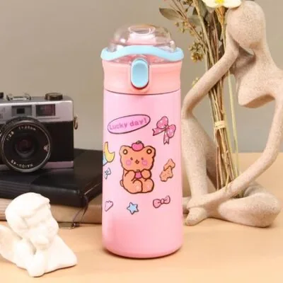 Новая вакуумная колба из нержавеющей стали 304 большой емкости, студенческая портативная прыгающая чашка, портативная крышка, милая соломенная чашка с мультяшной крышкой. 500ml розовый