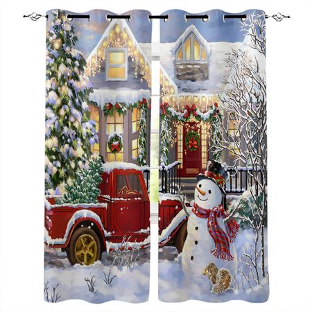 Новогодние плотные шторы с рождественской елкой и грузовиком для детей, домашний декор, спальни, гостиной, оконные шторы с высокой степенью затенения W135 x H60cm