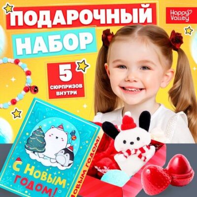 Представьте радость в глазах ребёнка, когда он откроет эту волшебную коробку! Набор «С Новым годом!» — это 5 сюрпризов, которые сделают новогодние праздники незабываемыми.Что внутри:Повязка на голову — яркий аксессуар позволит почувствовать себя настоящей звездой.Мягкий игрушка — пушистый друг станет верным спутником и подарит тепло и уют.Блеск для губ — с помощью блеска можно создать праздничный макияж и почувствовать себя настоящей принцессой.Бомбочка для ванны — превратит обычное купание в волшебный ритуал.Браслет — стильный аксессуар станет изюминкой любого образа.Набор «С Новым годом!» станет отличным подарком для девочки на Новый год, день рождения или любой другой праздник. Красочная коробка с новогодним дизайном создаёт праздничное настроение.