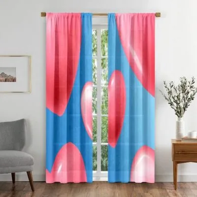 Новые дешевые розовые занавески с узором в виде сердечек и сердца, синие шторы с высоким затенением для гостиной, спальни, окна, украшения дома, 2 шт. W55 X H120cm X 2Grommet Top