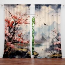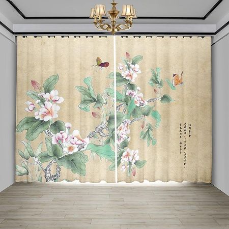 Новые китайские занавески цветы птицы гостиная цветок бабочка пейзаж тушь картина оконный экран занавеска китайские занавески 2 шт. 100W130H(CM)40x51inGrommet Top