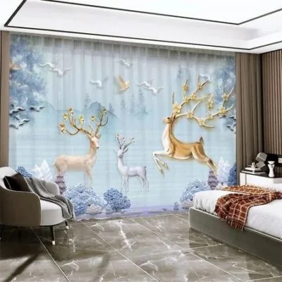 Новый китайский стиль Роскошный Золотой Лось Lucky Fortune Шторы Спальня Гостиная Кухня Жалюзи Шторы 2 Панели Высокого Затенения Новый W50xH130(CM)x2PCS-Rod pocket