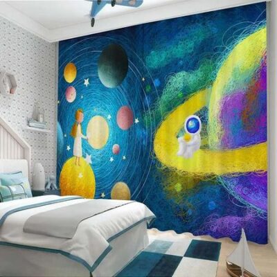 Новый мультфильм Земля Планета Космос Астронавт Ракета Печать Высокая затемняющая занавеска для детской комнаты Гостиная Оконная занавеска 2 шт. для дома W55 X H120cm X 2Grommet Top