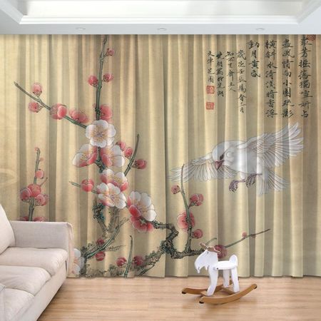 Новый национальный стиль Zen Ink Bamboo Полутеневой принт для штор с крючками для спальни, гостиной, от пола до потолка, 2 панели 100W130H(CM)40x51inGrommet Top
