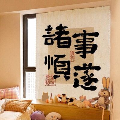Новый текст Китайский Вдохновляющий Национальный Прилив Занавес Литературная Каллиграфия Атмосфера Главная Крючок и петля без перфорации Шторы Ins 120 150cm