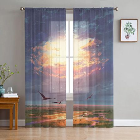 Облако Картина Птица Небо Современные Тюлевые Шторы с принтом для Спальни Декор Окна Балкона Креативная Мода Домашняя Прозрачная Занавеска 135W x 114H(cm)