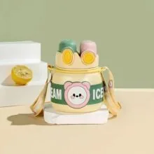 850 мл нержавеющая сталь кофейные чашки с трубочкой милый мультфильм двойные стенки термосы чашка для детей открытый спорт бутылки для воды 850ml жёлтый