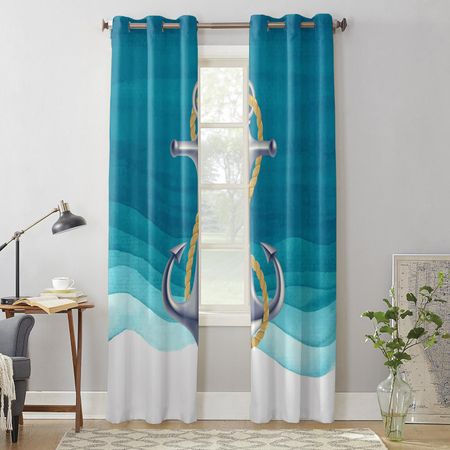 Океанский градиент, якорь, бирюзовые шторы для спальни, гостиной, оконные шторы, жалюзи, кухня, домашний декор, шторы 135W x 60H(cm) x1