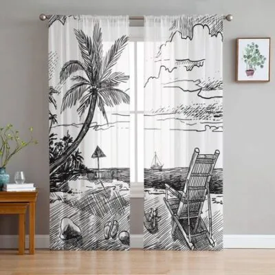 Главная » Все для дома Окно Вид на море Кокосовая пальма Пляж Тюль Прозрачные оконные шторы для гостиной кухни детской спальни Вуаль Подвесная занавеска W135 x H114cm Просмотров 8 Versatile Home Furnishing