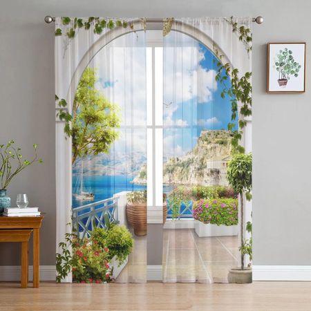 Оконные морские парусные пейзажи прозрачные шторы для гостиной, тюлевые шторы для спальни, кухни, украшения дома, вуаль, шторы W135 x H115cm x1Grommet Top