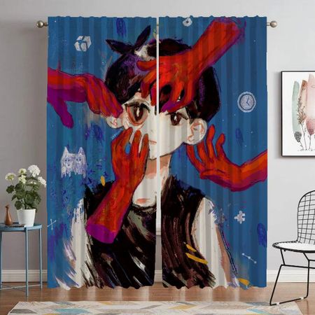 Omori Curtains for Living Room Curtain Anti-mosquito Curtains 2 Pieces Halloween Decoration Tulle for Bedroom Shades Partition W60xH90cmx2pcs-CL