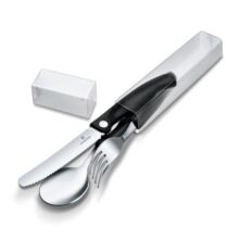 Набор для пикника VICTORINOX, нож для чистки овощей, вилка, ложка, набор из 3 предметов, лезвие Wave Blade 11 см, черный, с футляром, удобен для использования на природе и в кемпинге, можно мыть в посудомоечной машине, швейцарский чёрный