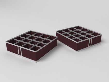 Органайзер размером 35х35х10 см., позволит организовать рациональное хранение нижнего белья, носков, чулок и других подобных вещей. Он разбит на 16 ячеек, каждая из которых предназначена для одной пары, каркас изделия выполнен из картона. Практичная и компактная модель поместится в выдвижной ящик или шкаф. Благодаря качественной застежки-молнии на донышке — органайзер легко складывается и раскладывается. Изделие изготовлено из нетканого, "дышащего" материала.