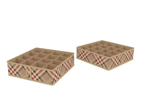 Органайзер размером 35х35х10 см., позволит организовать рациональное хранение нижнего белья, носков, чулок и других подобных вещей. Он разбит на 16 ячеек, каждая из которых предназначена для одной пары, каркас изделия выполнен из картона. Практичная и компактная модель поместится в выдвижной ящик или шкаф. Благодаря качественной застежки-молнии на донышке — органайзер легко складывается и раскладывается. Изделие изготовлено из нетканого, "дышащего" материала.