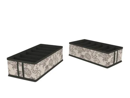 Органайзер для нижнего белья и маек размером 35х16х10 см., прекрасно дополнит организованную систему хранения в шкафу или гардеробной. 6 ячеек позволят выделить для каждой вещи свое место и легко найти нужную. Благодаря качественной застежки-молнии на донышке — органайзер легко складывается и раскладывается. Изделие изготовлено из нетканого, "дышащего" материала, каркас выполнен из картона.