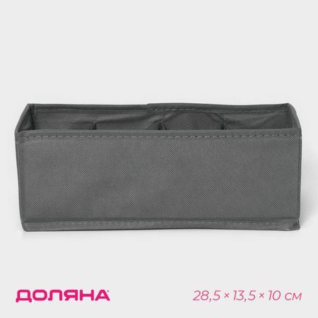 Органайзер для хранения белья Доляна «Смарт», 8 ячеек, 28.5×13.5×10 см, серый. Представляем идеальное решение для наведения порядка в Вашем гардеробе — органайзер для хранения белья. Органайзер с 8 отделениями станет полезным в каждом доме и позволит организовать идеальную систему хранения вещей. <b> Применение:</b> <ul> <li> Этот кофр для хранения вещей сделает ваш гардероб более удобным и компактным, а Вам при этом не придется искать нужную вещь среди кучи белья и аксессуаров.</li> <li> Органайзер подойдет для хранения разных вещей: нижнего белья, носков, колготок, бюстгальтеров, ремней, галстуков и даже мелких аксессуаров.</li> <li> Органайзер выполнен из качественных материалов и имеет ячейки, чтобы вы могли организовать хранение вещей удобным способом.</li> <li> Прямоугольный короб с легкостью поместятся на полке в многоярусном шкафу, секционном шкафчике и даже прикроватной тумбочке.</li> </ul>