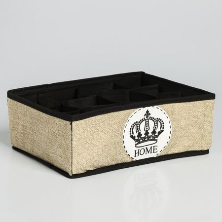 Органайзер для хранения белья, кофр 12 ячеек HOME, 27×20×10 см. Многие сталкиваются с проблемой размещения небольших вещей. Занимать ими целую полку жалко, а хранить в других местах неэстетично. Решение есть! Кофр поможет разобраться с беспорядком. Поставьте его в гардероб или на пол, и вы всегда будете знать, где и что в нем находится. Благодаря легкости убрать изделие на возвышение смогут даже хрупкие девушки. <b> Преимущества:</b> <ul> <li> Большой объем.</li> <li> Многофункциональность.</li> <li> Малый вес и отсутствие острых углов.</li> <li> Стильный дизайн.</li> </ul> Вместе с этим простым предметом в доме поселятся порядок и уют. Оригинальное изделие дополнит ваш интерьер и станет украшением помещения.