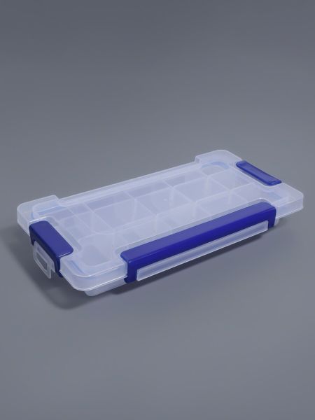 Органайзер для хранения мелочей, с подвесом, 15 ячеек, 23×12×3.5 см, прозрачный, синий. Сине-прозрачный настенный органайзер с 15 закрытыми ячейками помогает удобно хранить и сортировать мелкие предметы. Габариты 23×12×3,5 см оптимальны для размещения в мастерской, швейном уголке или рабочей зоне. <b> Практичные особенности</b> <ul> <li> 15 отдельных отсеков — ничего не смешивается и не теряется</li> <li> Полупрозрачный пластик — хорошо видно содержимое, но при этом ячейки выглядят аккуратно</li> <li> Настенное крепление — экономит место на столе и в ящиках</li> <li> Универсальные размеры ячеек — подходят для большинства мелких предметов</li> </ul> <b> Кому пригодится</b> Органайзер создан для: — рукодельниц (хранение страз, бусин, фурнитуры) — мастеров (крепеж, мелкие детали) — коллекционеров (монеты, значки) — офисных работников (канцелярские мелочи) — родителей (детские пуговицы, мелкие игрушки) Прочный пластик выдерживает ежедневное использование, а закрытые ячейки защищают содержимое от пыли и случайного рассыпания.