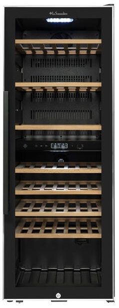 LaSommeliere (ЛаСомелье) ECS81.2Z это отдельно стоящий винный шкаф, оснащенный выдвижными полками из массива бука. Само корпус шкафа выполнен из стали и окрашен в элегантный черный цвет. Дверь со стеклопакетом также дополнена УФ-фильтром, который защищает бутылки с винами от негативного воздействия солнечных лучей.