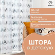 Штора Этель «Милые хвостики», 145х260 см, 100% хлопок.