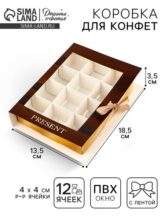 Коробка под 12 конфет с ячейками «Дерево» 18.